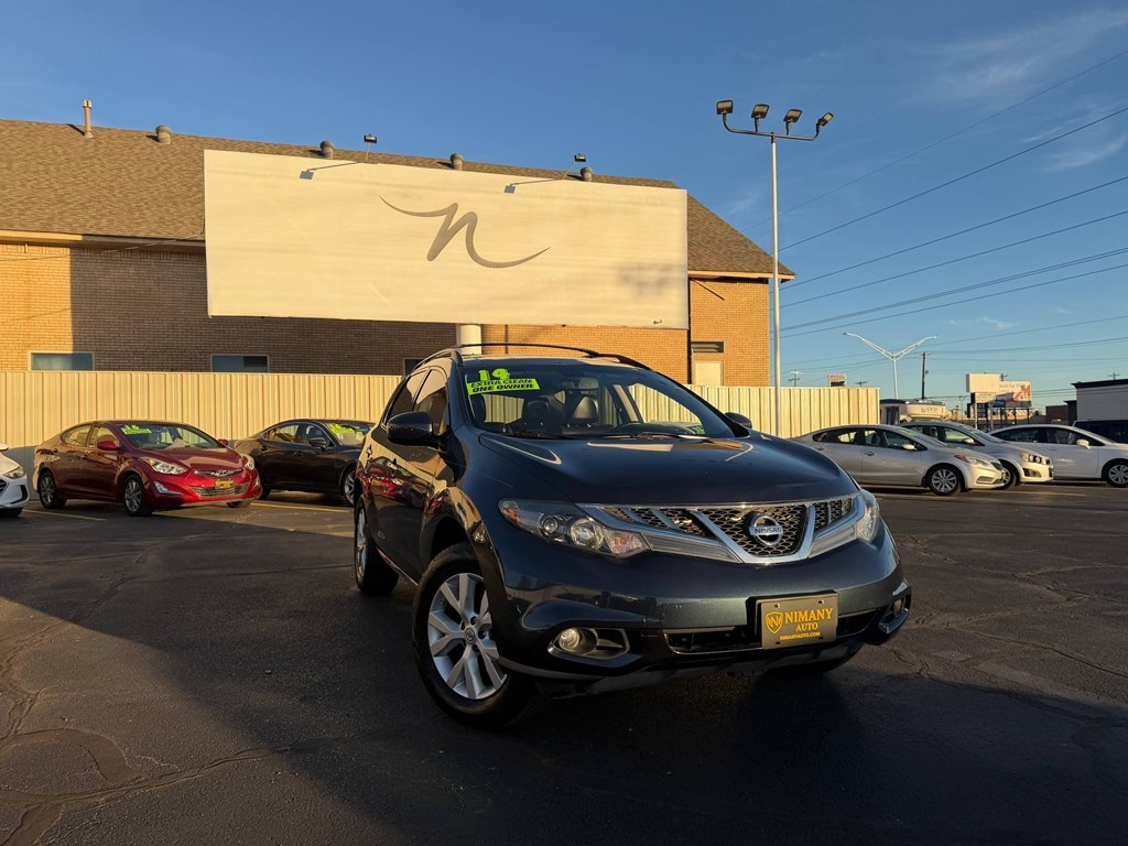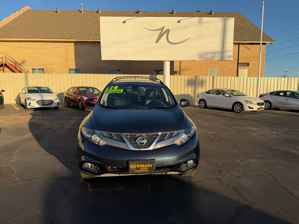 Step into the luxurious world of this sleek blue 2014 Nissan Murano! With its spacious interior, comfortable seats, and powerful engine, this car is ready to take you on any adventure you desire. Imagine cruising down the highway with the panoramic sunroof open, feeling the wind in your hair and the sun on your skin. The premium sound system will have you rocking out to your favorite tunes, while the rearview camera and parking sensors ensure a stress-free parking experience every time. This Murano offers excellent fuel efficiency, so you can spend more time enjoying the ride and less time at the pump. With its stylish exterior design and smooth ride, this car will turn heads wherever you go. Whether you're driving to work, running errands, or embarking on a road trip, this 2014 Nissan Murano is sure to make every drive an enjoyable one.Visit Nimany Auto Group to shop our great deals. You can contact us or call 405-223-6888 to schedule your test drive today.